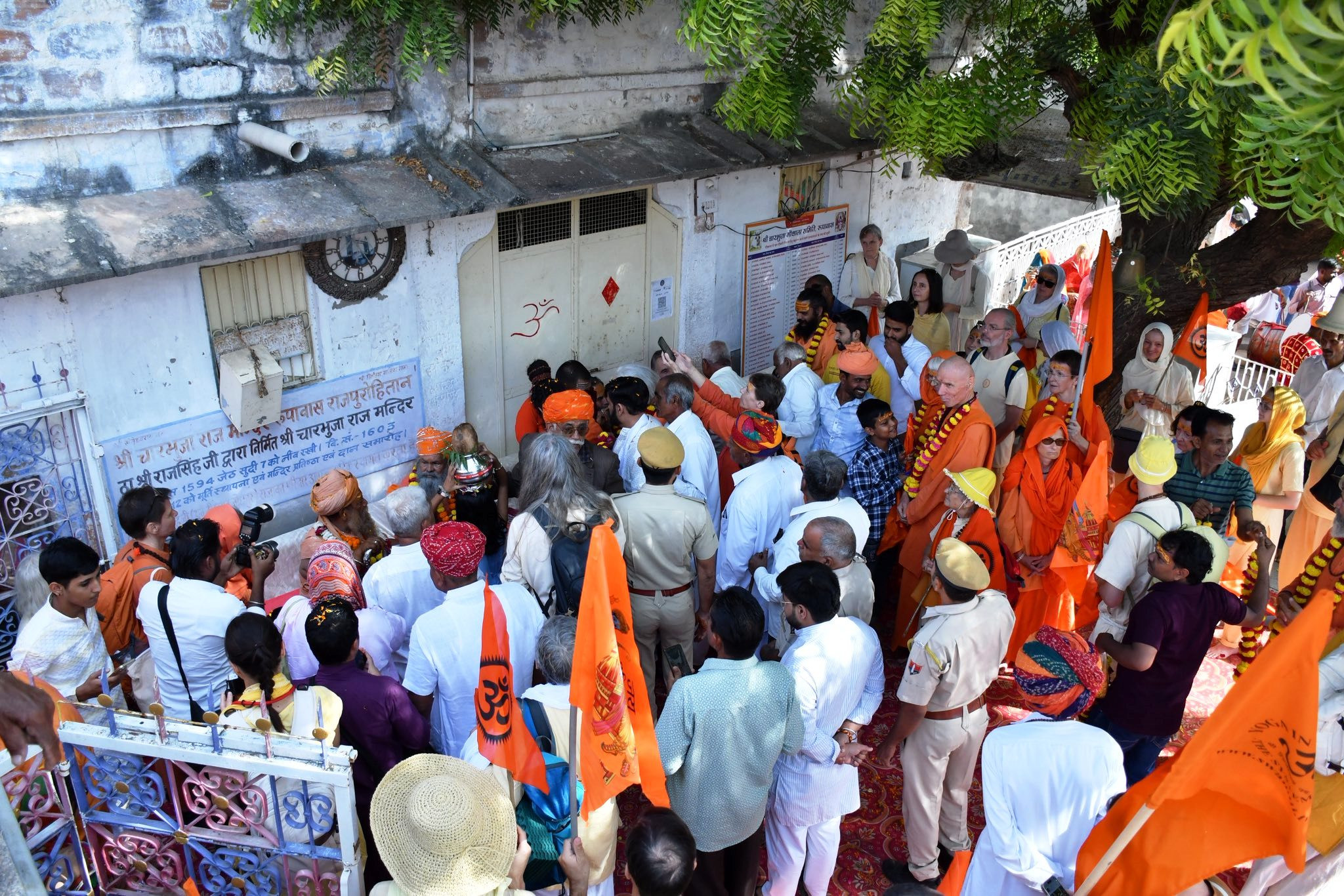 The procession and ceremonies were held under the divine guidance of Vishwaguruji and were blessed by the holy presence of Acharya Mahamandaleshwar Bikaner Rajguru Vishokanand Bhartiji, Swami Avtar Puriji, Mahamandaleshwar Swami Gyaneshwar Puriji, Mahamandaleshwar Swami Phul Puriji, Mahamandaleshwar Swami Atmanand Puriji, along with many revered mahants, swamis, saints, and devoted bhaktas from across India and around the world.