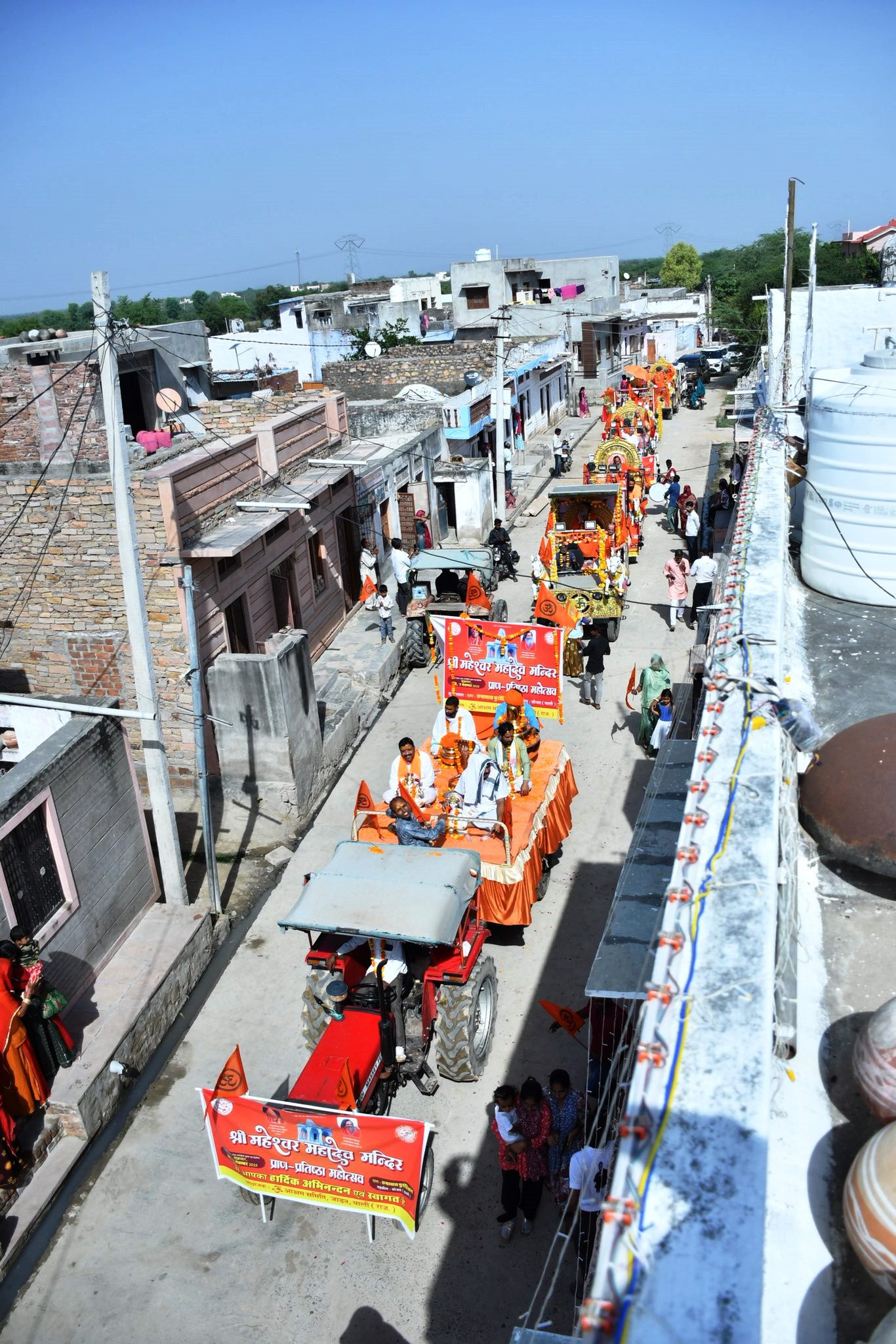 The sacred celebrations of the inauguration of Rupawas Ashram and the pran pratishtha mahotsav  (holy consecration) of Shri Maheshwar Mahadev Mandir began with the blessed kalash yatra. Beginning from the Shree Charbhuja Temple in the heart of the village, the procession moved joyfully through the streets, led by women carrying the kalash, a sacred vessel symbolising divine energy and life-giving abundance.
