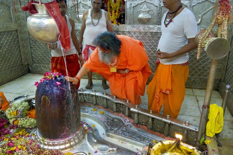 On Monday 2 May 2016, which was the holy occasion of Dashami - one day before the Ekadashi Snaan in the River Kshipra in Ujjain (ritual bathing on 11th day after the full moon) - Vishwaguruji visited Mahakaleshwar Temple.