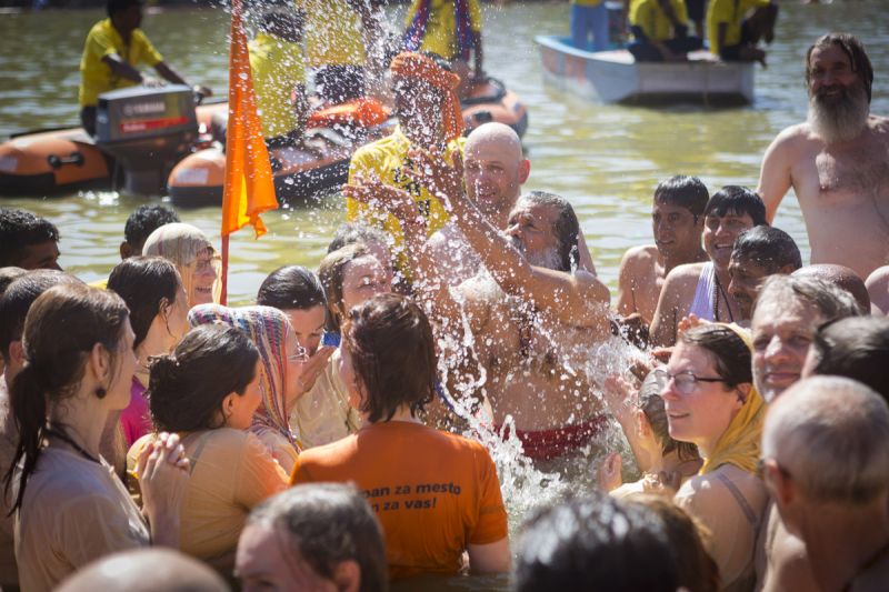 On 23 April 2016, Vishwaguruji blessed his disciples with an unexpected afternoon Snaan. Devotion and happiness exploded in the Holy River Kshipra.